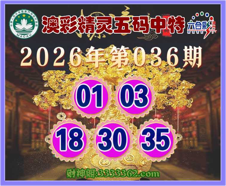 036期:『澳彩精灵』 🧸五码中特🧸【01.03.18.30.35】开:01