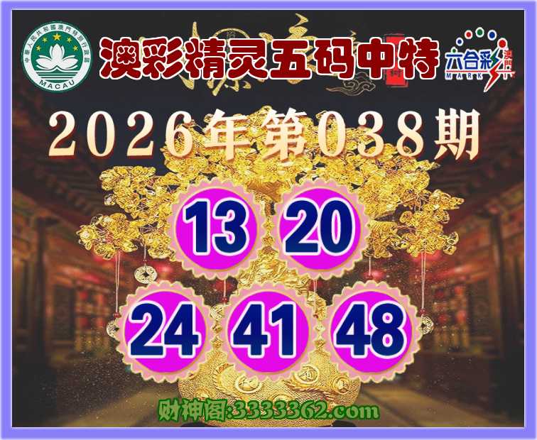 038期:『澳彩精灵』 🧸五码中特🧸【13.20.24.41.48】开:00准