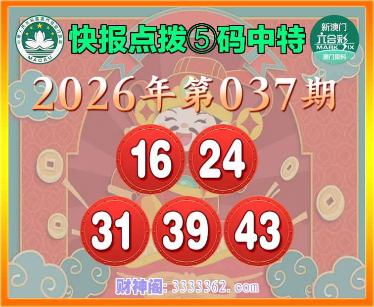 037期: 🏃‍♀️『快报点拨』 🏃‍♀️⑤码中特🏃‍♀️【16.24.31.39.43】开:43