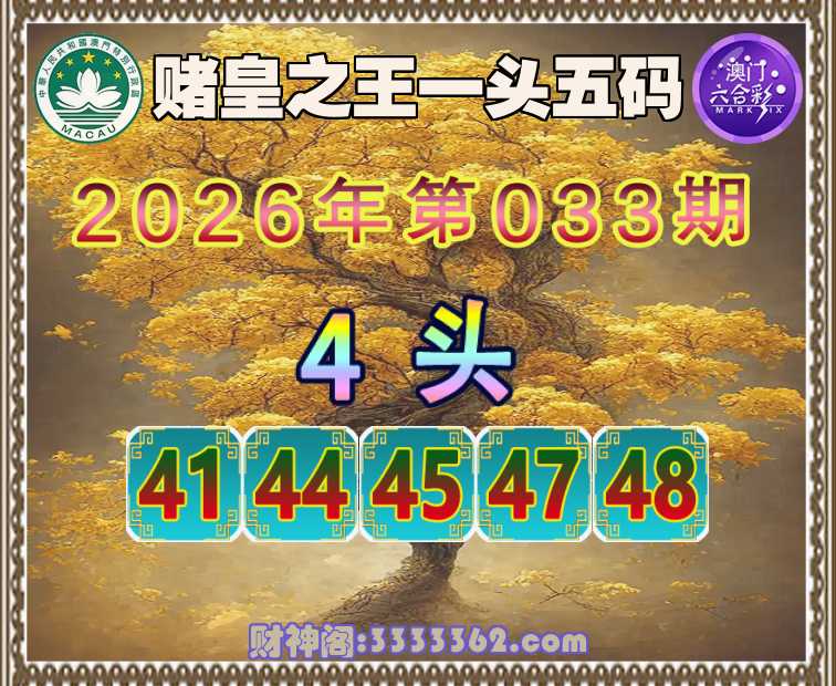 033期:《赌皇之王》 🤩一头五码🤩【4头主:41.44.45.47.48】开:41