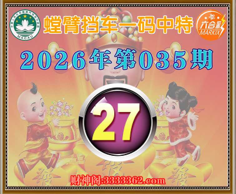 035期:【螳臂挡车】一码中特⚽【27】开:27