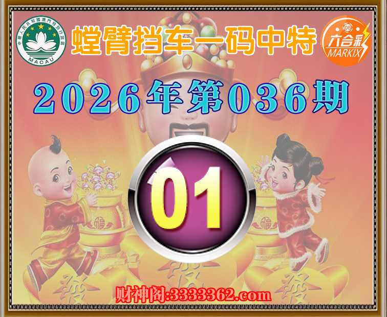 036期:【螳臂挡车】一码中特⚽【01】开:01
