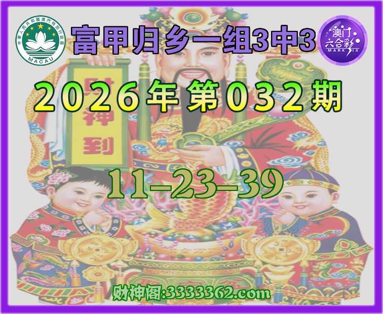 032期: ♠️『富甲归乡』 ♠️一组3中3♠️【11-23-39