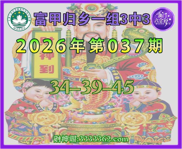 037期: ♠️『富甲归乡』 ♠️一组3中3♠️【34-39-45