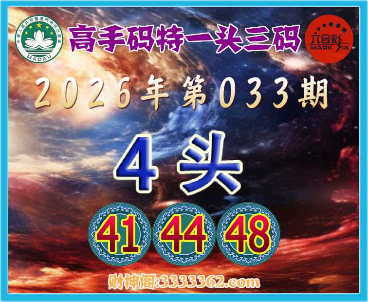 033期: 🎆《高手码特》 🎆一头三码🎆【4头主:41.44.48】开:牛41