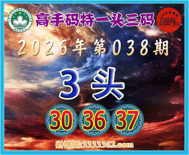038期: 🎆《高手码特》 🎆一头三码🎆【3头主:30.36.37】开:00准