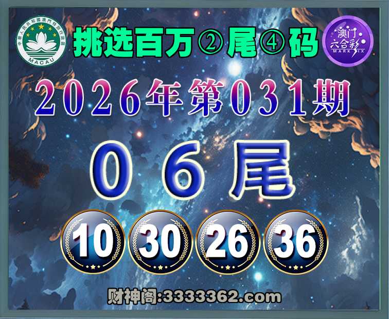 031期:『挑选百万』 🥬②尾④码🥬【06尾主:10.30.26.36】开:26