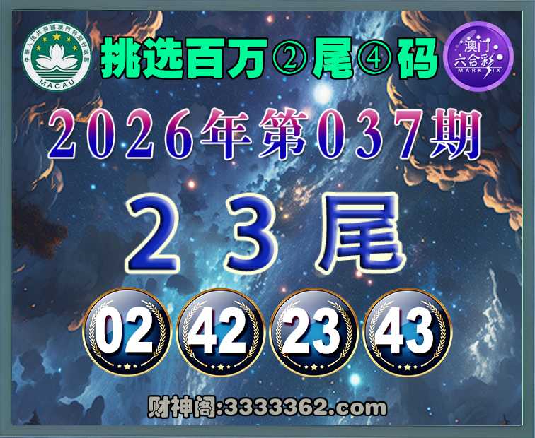 037期:『挑选百万』 🥬②尾④码🥬【23尾主:02.42.23.43】开:43