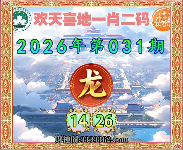 031期:《欢天喜地》 🪢一肖二码🪢【】【14.26】开:龙26