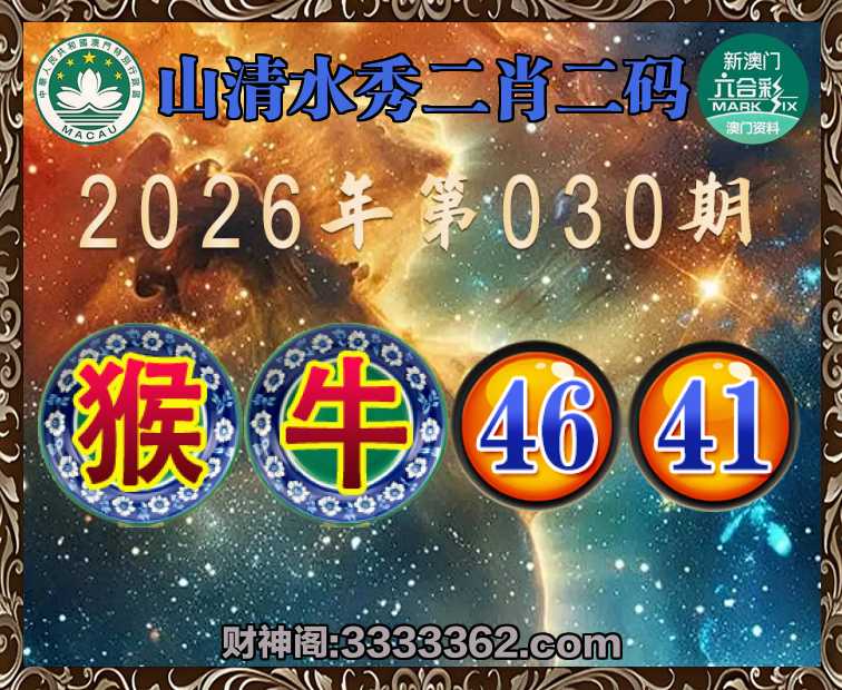 030期:『山清水秀』 🌲二肖二码🌲【猴】【46.41】开:牛41