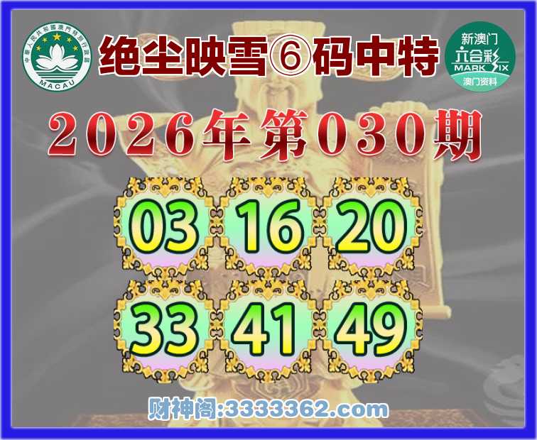 030期:『绝尘映雪』  ♣️⑥码中特 ♣️【03.16.20.33.41.49】开:41