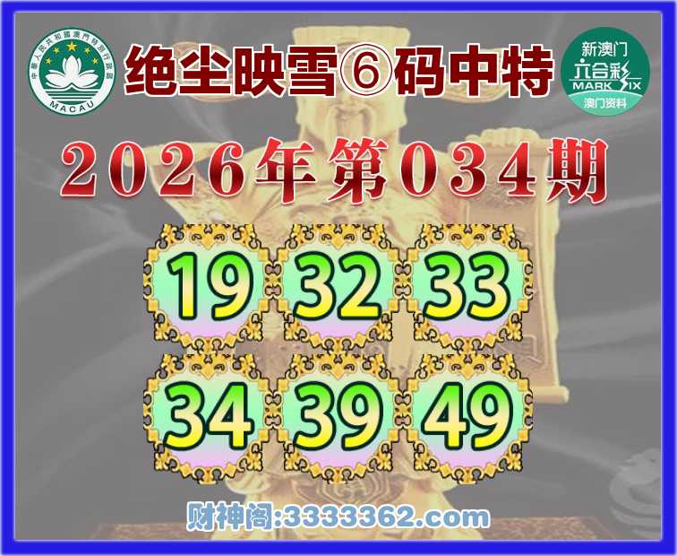 034期:『绝尘映雪』  ♣️⑥码中特 ♣️【19.32.33.34.39.49】开:19