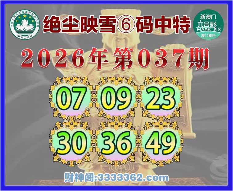 037期:『绝尘映雪』  ♣️⑥码中特 ♣️【07.09.23.30.36.49】开:00准