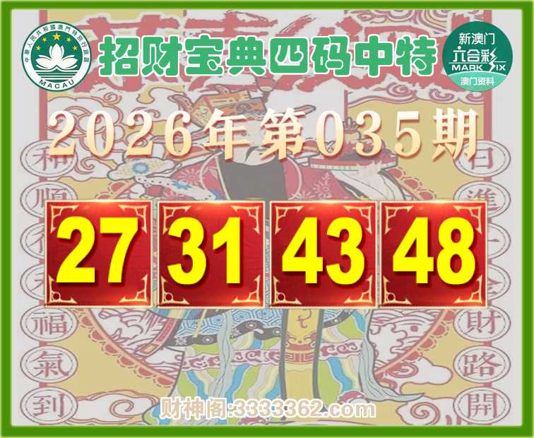 035期:《招财宝典》 🏵️四码中特🏵️【27.31.43.48】开:27