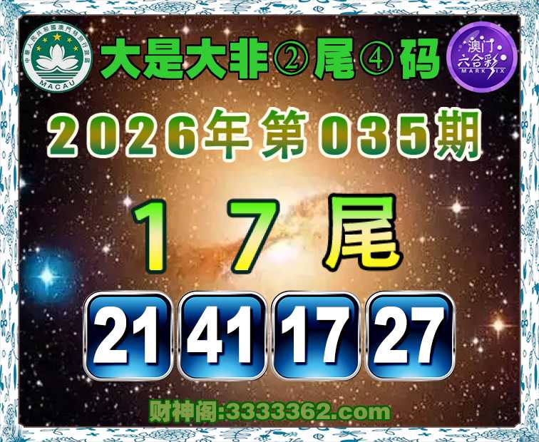 035期:【大是大非】 🏃‍♀️②尾④码🏃‍♀️【17尾主:21.41.17.27】开:27