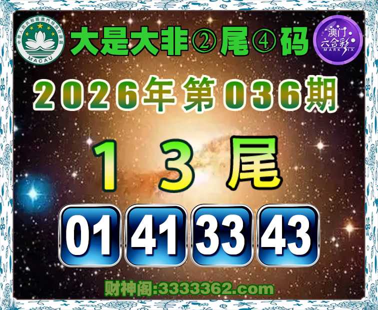 036期:【大是大非】 🏃‍♀️②尾④码🏃‍♀️【13尾主:01.41.33.43】开:01