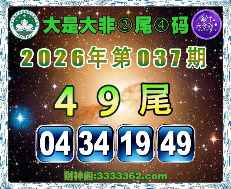 037期:【大是大非】 🏃‍♀️②尾④码🏃‍♀️【49尾主:04.34.19.49】开:00准
