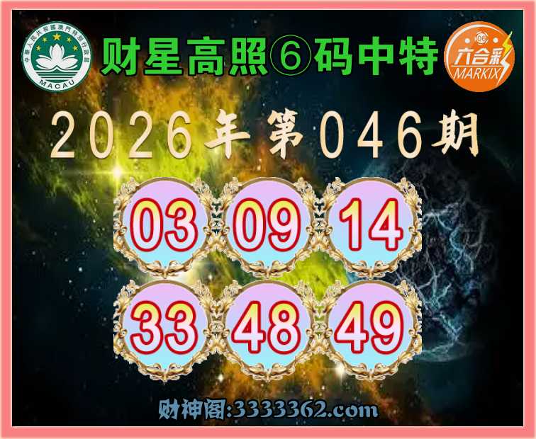 046期:『财星高照』 🍧⑥码中特🍧【03.09.14.33.48.49】开:00准