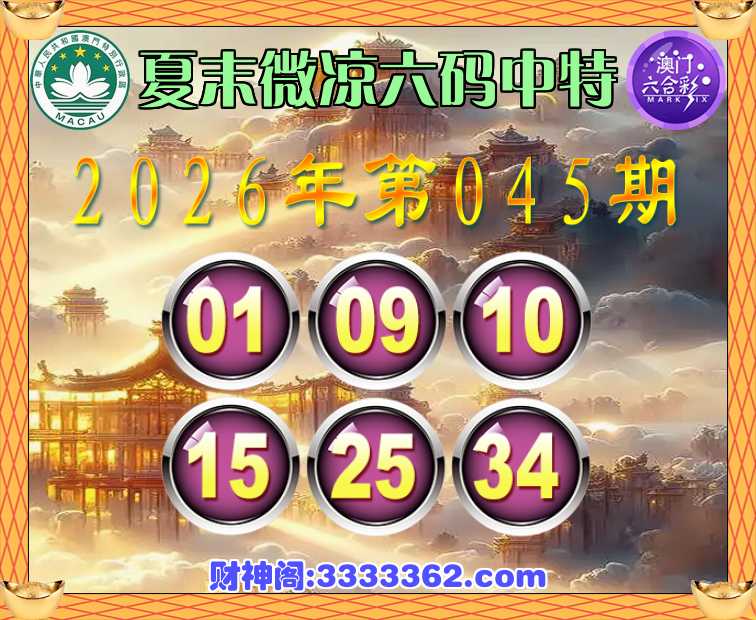 045期:〖夏末微凉〗 🍅六码中特🍅【01.09.10.15.25.34】开:01