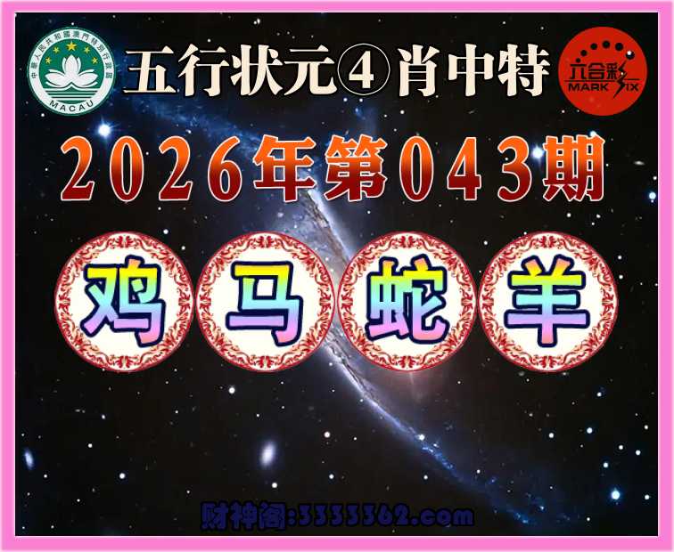 043期:【五行状元】 🏵️④肖中特🏵️【鸡.马..羊】开:蛇13