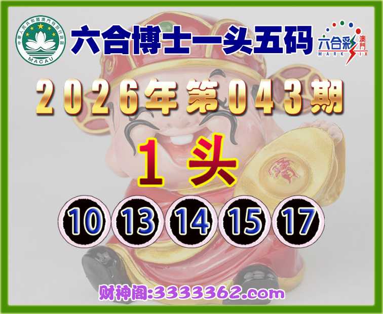 043期:【六合博士】 🏃‍♀️一头五码🏃‍♀️【1头主:10.13.14.15.17】开:13
