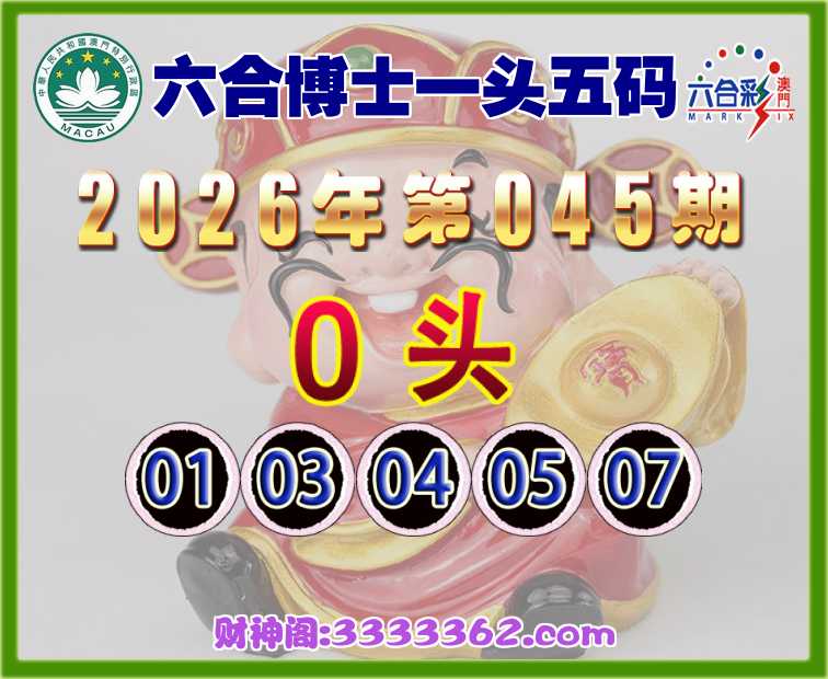 045期:【六合博士】 🏃‍♀️一头五码🏃‍♀️【0头主:01.03.04.05.07】开:01