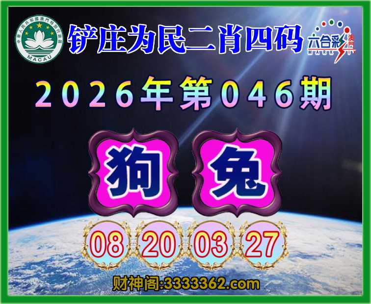 046期:『铲庄为民』 📙二肖四码📙【狗】【08.20.03.27】开:兔03