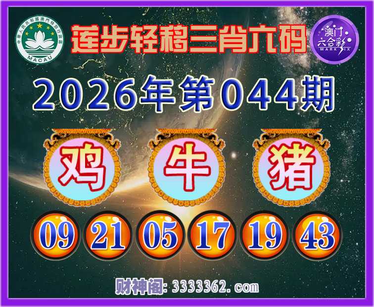 044期: ☝️『莲步轻移』 ☝️三肖六码☝️【鸡牛】开:猪19