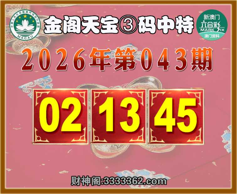043期:『金阁天宝』 🍗③码中特🍗【02.13.45】开:13