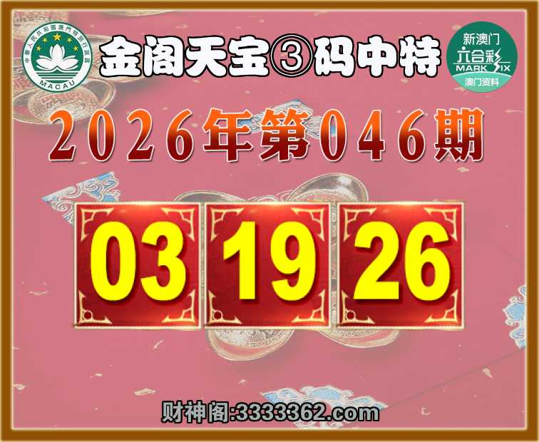 046期:『金阁天宝』 🍗③码中特🍗【03.19.26】开:03