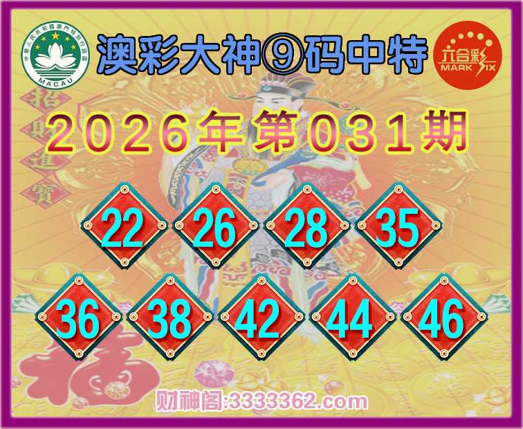 031期:《澳彩大神》 🏵️⑨码中特🏵️开:26