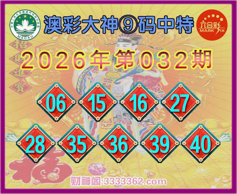 032期:《澳彩大神》 🏵️⑨码中特🏵️开:06