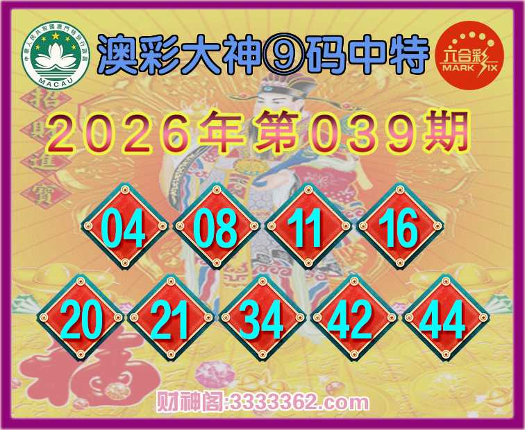 039期:《澳彩大神》 🏵️⑨码中特🏵️开:11