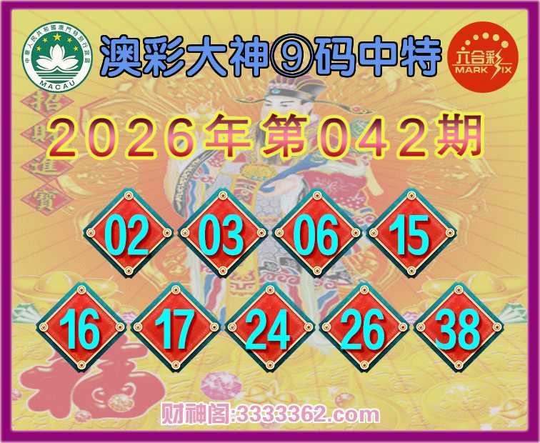 038期:《澳彩大神》 🏵️⑨码中特🏵️开:42