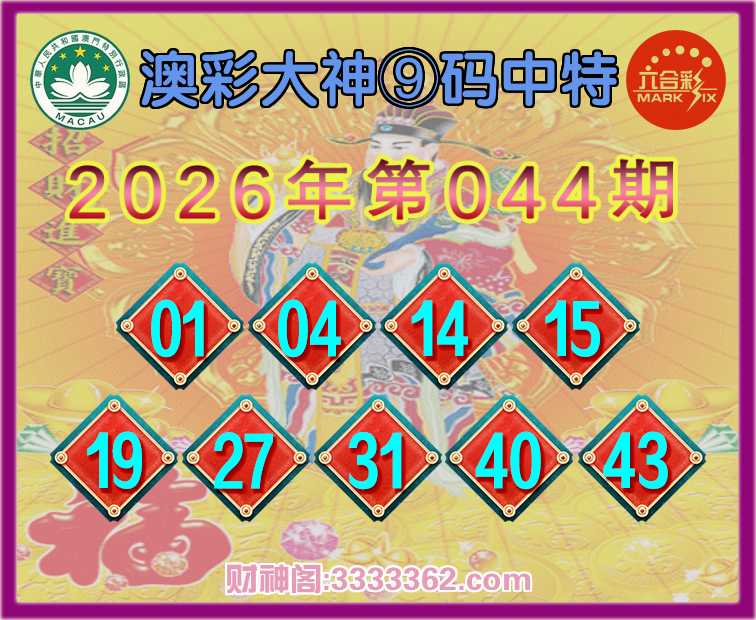 044期:《澳彩大神》 🏵️⑨码中特🏵️开:19