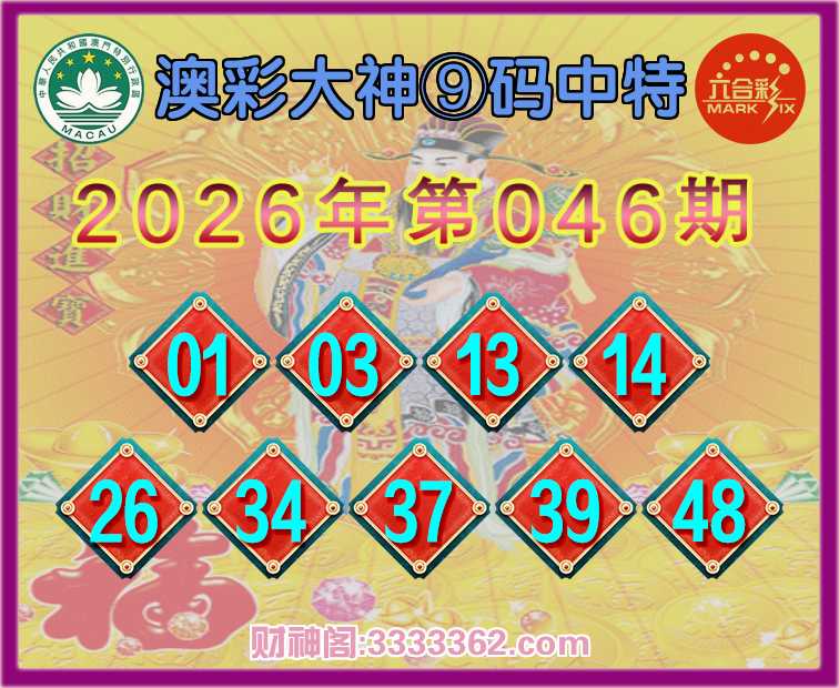 046期:《澳彩大神》 🏵️⑨码中特🏵️开:03