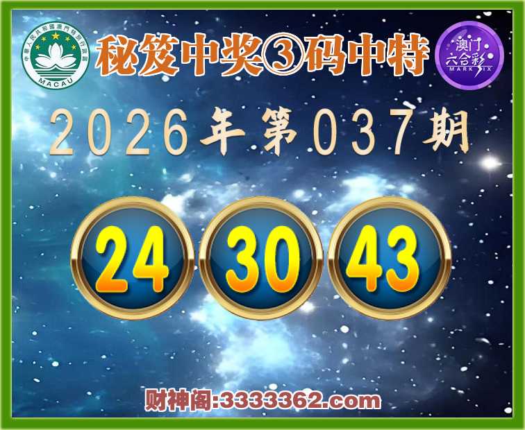 037期:『秘笈中奖』 🥬③码中特🥬【24.30.43】开:43