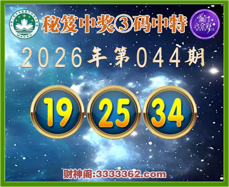 044期:『秘笈中奖』 🥬③码中特🥬【19.25.34】开:19