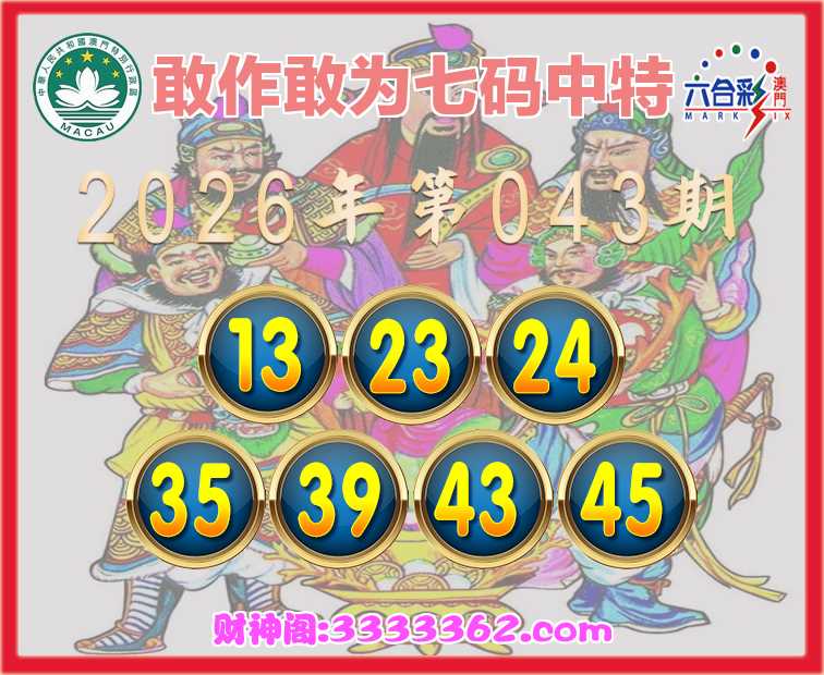 043期:《敢作敢为》 🍧七码中特🍧【13.23.24.35.39.43.45】开:13