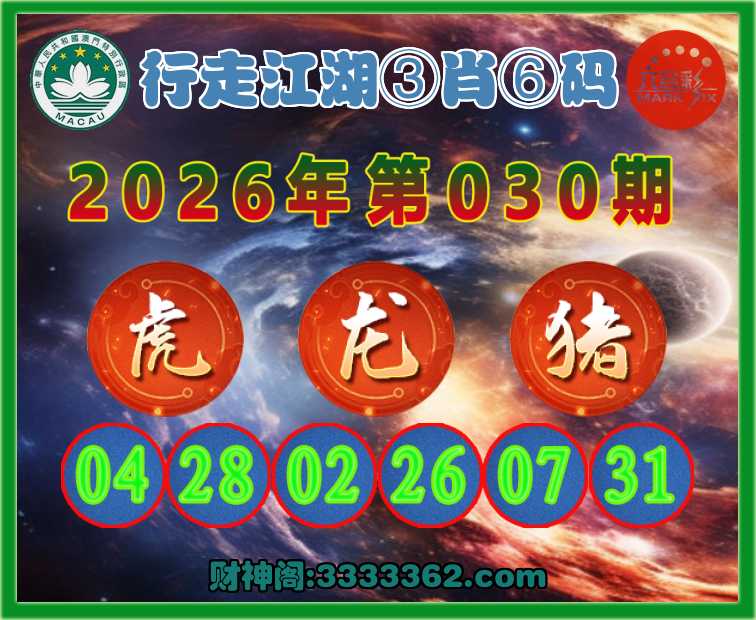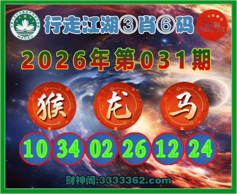031期:【行走江湖】 🩴③肖⑥码🩴【猴马】开:龙26