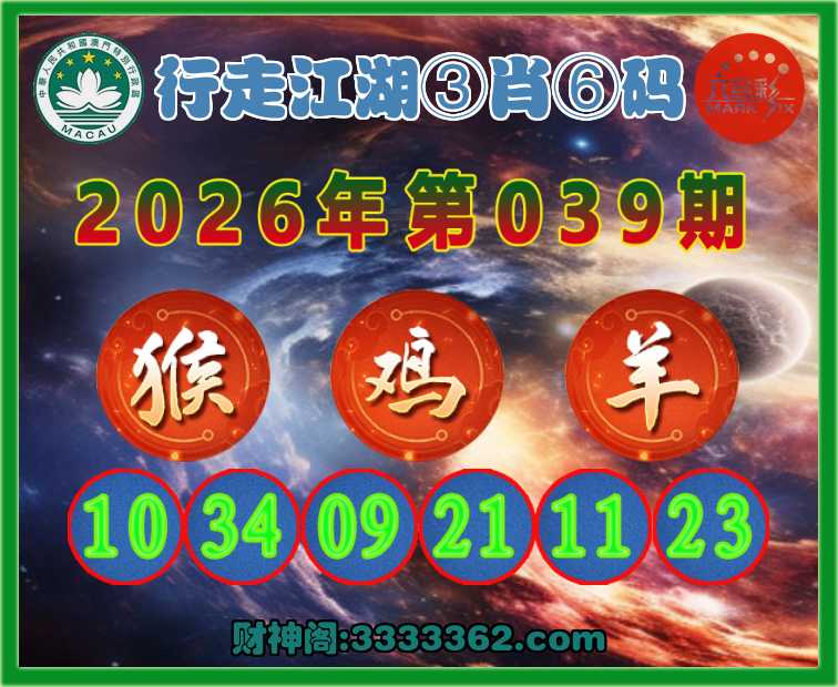 039期:【行走江湖】 🩴③肖⑥码🩴【猴鸡】开:羊11