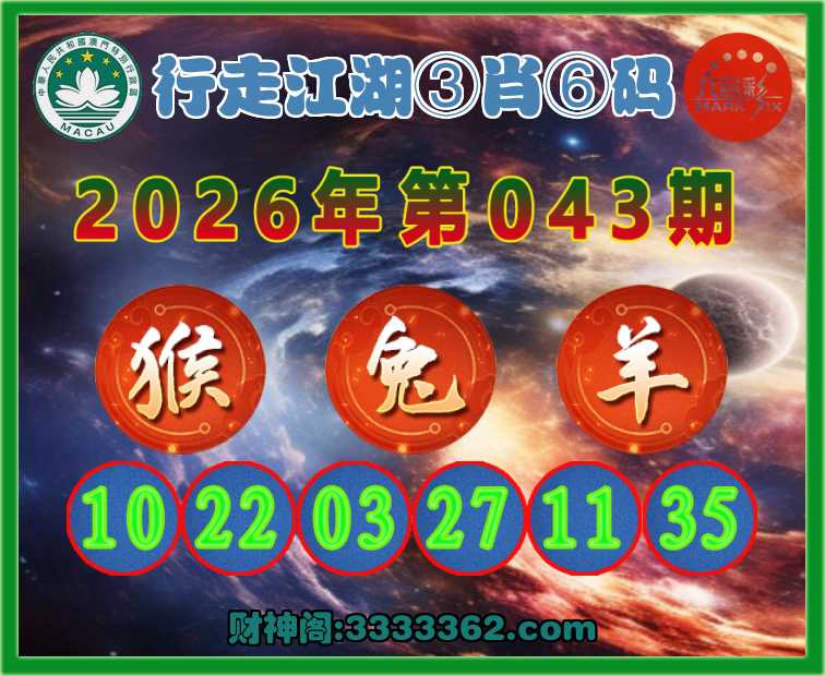 043期:【行走江湖】 🩴③肖⑥码🩴【猴兔羊】开:蛇13