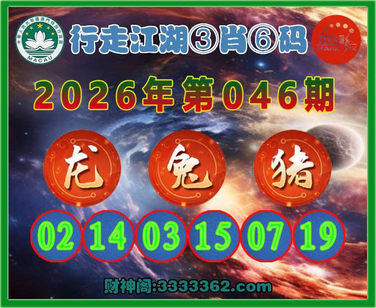 046期:【行走江湖】 🩴③肖⑥码🩴【龙猪】开:兔03