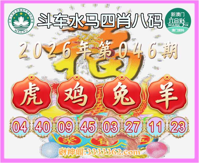 046期:【斗车水马】 🧏‍♀️四肖八码🧏‍♀️【虎鸡羊】开:兔03