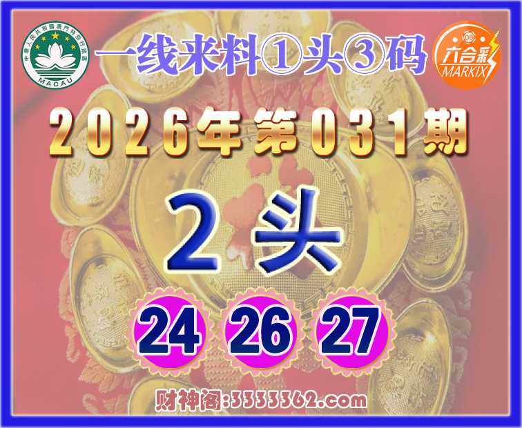 031期: 🏃‍♀️『一线来料』 🏃‍♀️①头③码🏃‍♀️【2头主:24.26.27】开:龙26