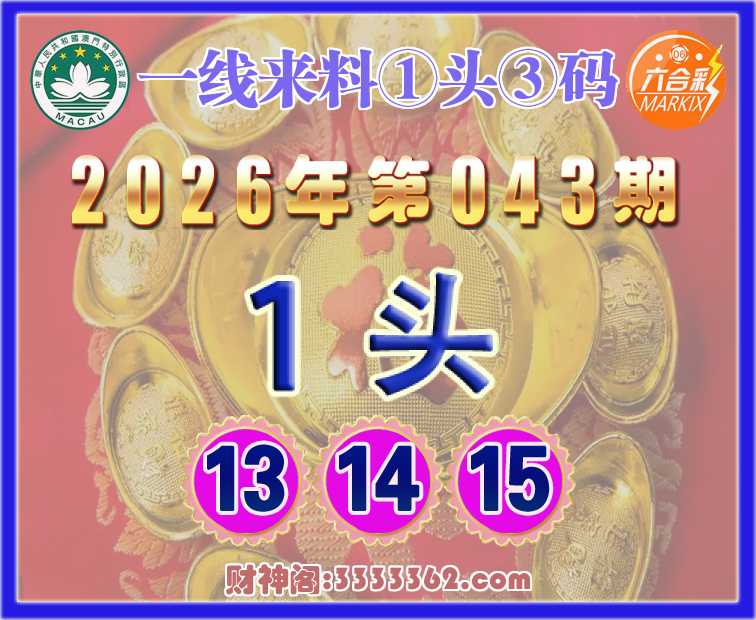043期: 🏃‍♀️『一线来料』 🏃‍♀️①头③码🏃‍♀️【1头主:13.14.15】开:蛇13